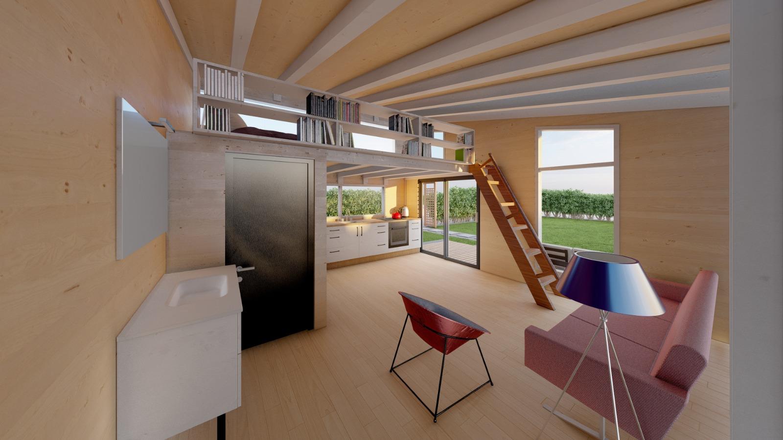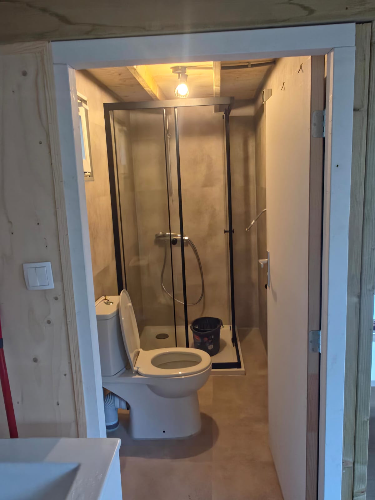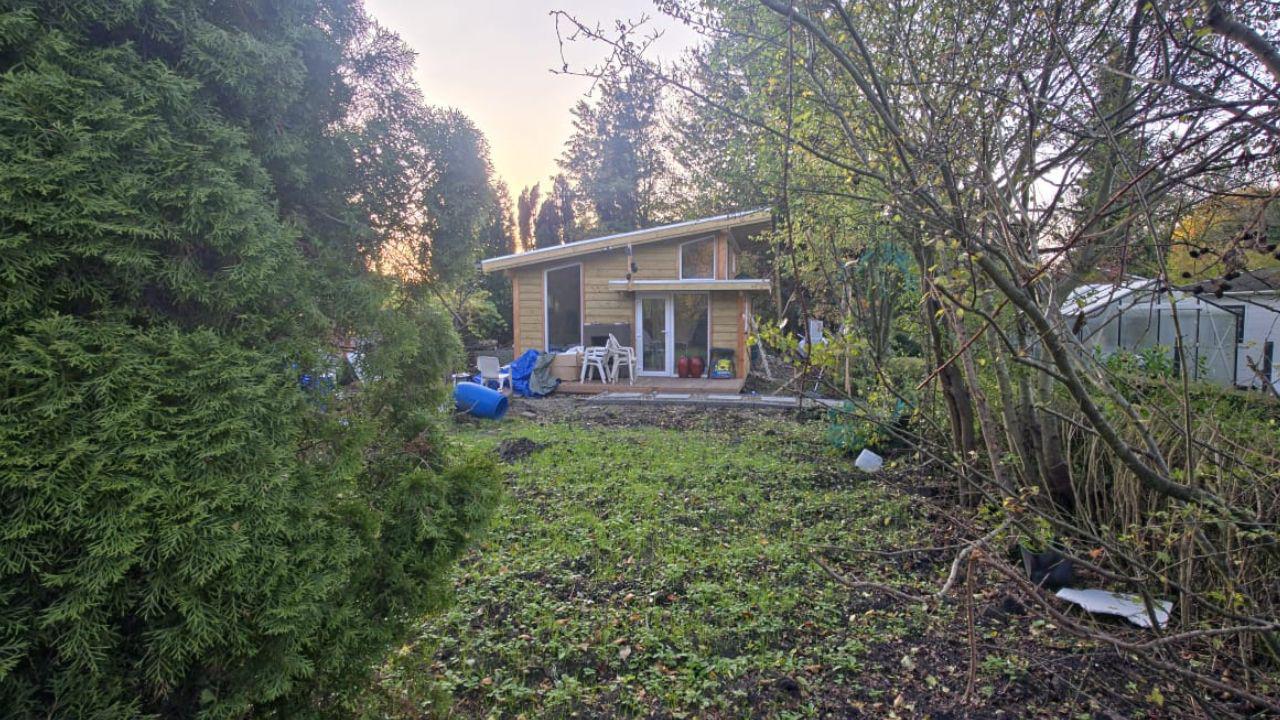 Het tuinhuis beschikt over water en elektriciteit en is voorzien van een op maat gemaakte keuken en badkamer, speciaal ontworpen voor onze klant. De vloeren zijn afgewerkt met duurzaam PVC, wat zowel praktisch als stijlvol is.